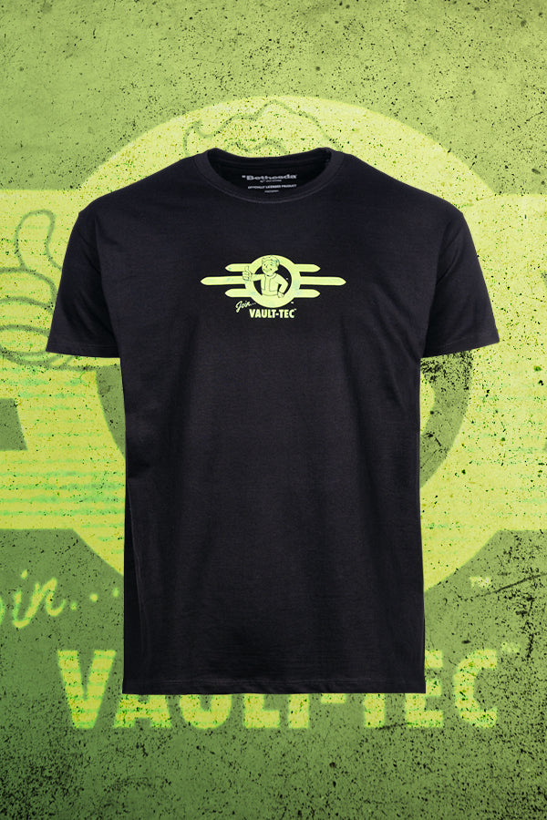 Hier bei Vault-Tec strahlt jeder vor Stolz, zum Team zu gehören. Selbst unsere T-Shirts leuchten! Hol dir dein eigenes Fallout™ Join Vault-Tec T-Shirt mit einem im Dunkeln leuchtenden Aufdruck und erlebe es selbst.