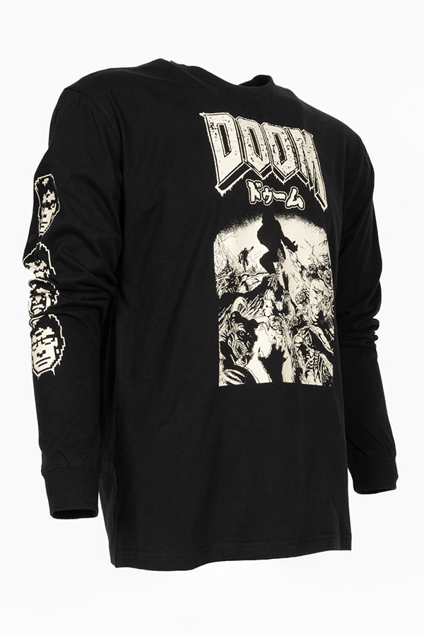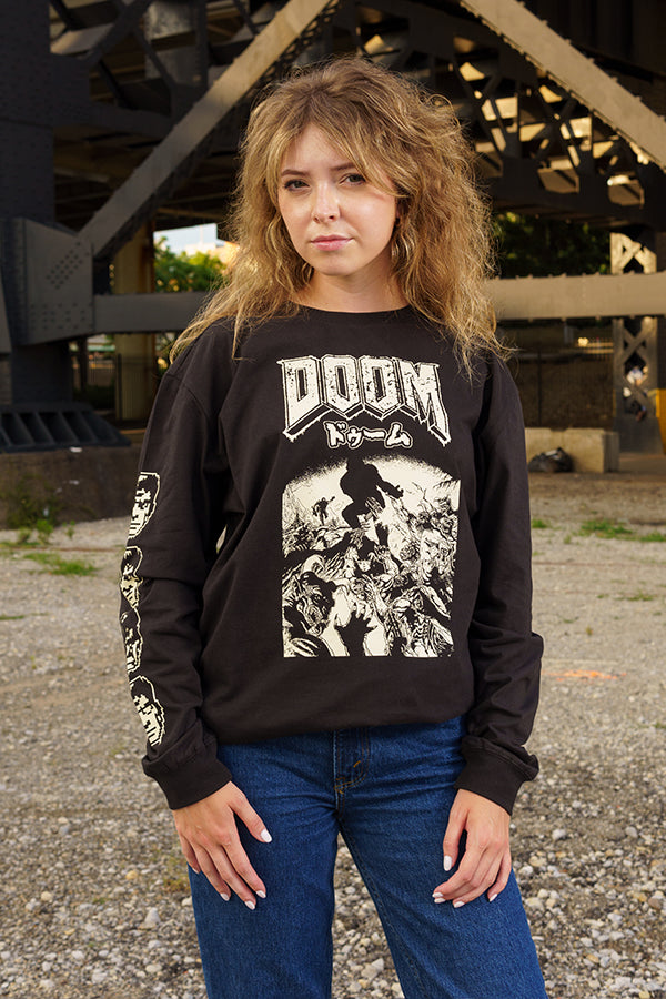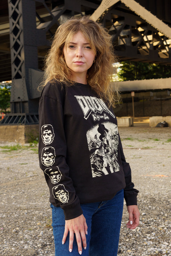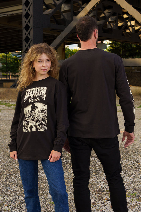 Lo-fi DOOM art meets a relaxed silhouette. Make the DOOM Rip and Tear Long Sleeve the highlight of your streetwear outfits!