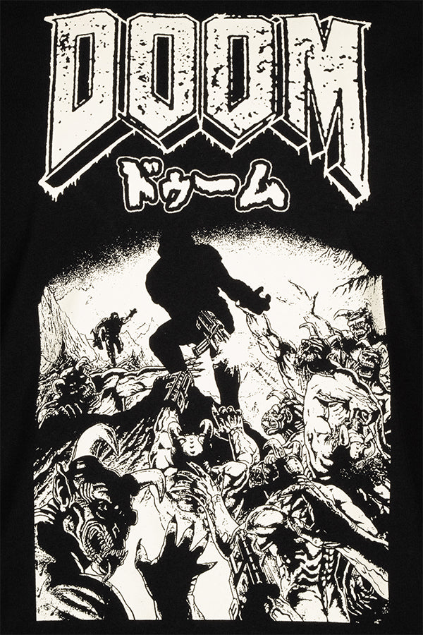 • Front: Stylized version of DOOM (1993) key art feat. Japanese translation of title
