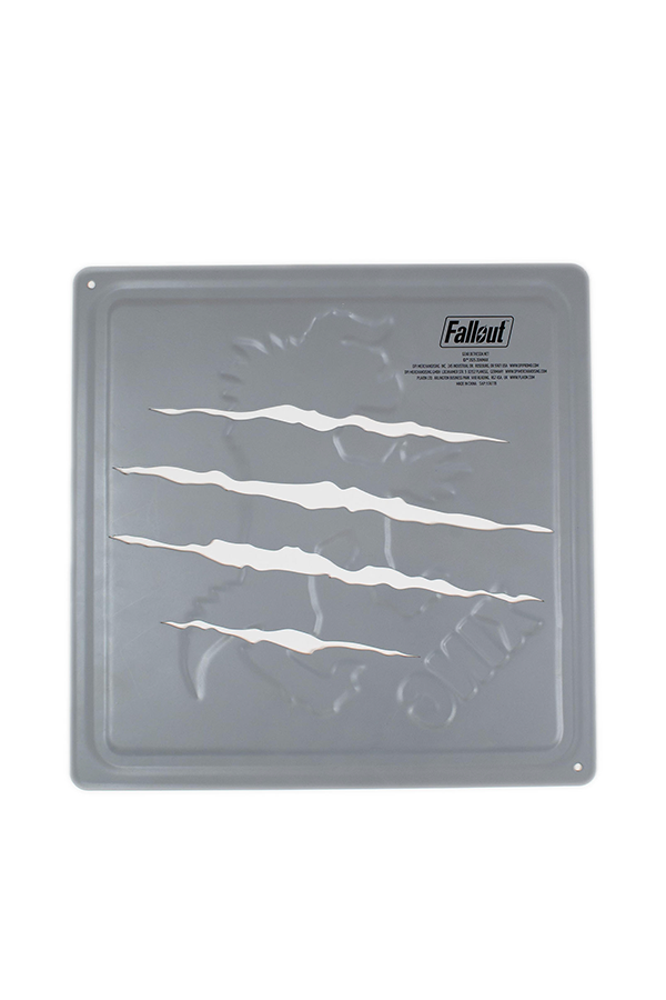 Deathclaws near your settlement? Warn friends and passers-by with your Fallout™ Deathclaw Crossing Metal Sign! Made to belong in the Wastes, it features embossed details, weathered look and four cutouts where a raging deathclaw would’ve left a scratch.