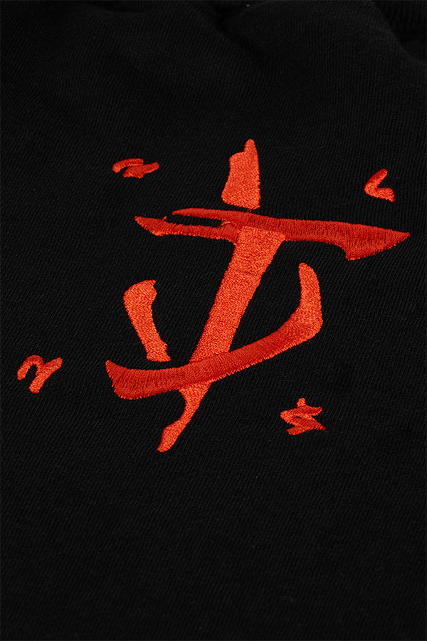 • Stampa serigrafica del logo DOOM sulla gamba destra dell'indossatore